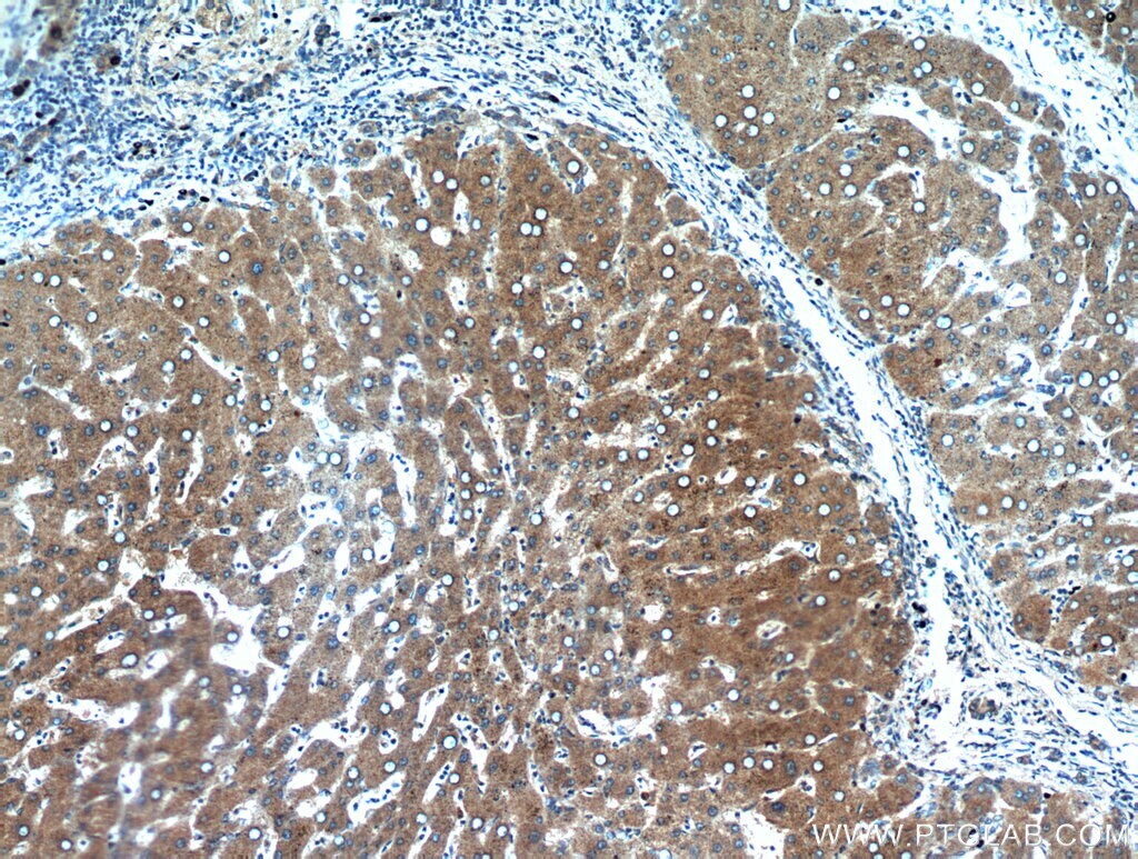 - Immunohistochemistry of paraffin-embedded human hepatocirrhosis using 10585-1-AP (INVS antibody) at dilution of 1:50 (under 10x lens).