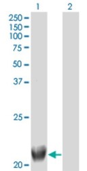 - Western Blot: TRIML1 Antibody (4F8) [H00339976-M01] - Analysis of TRIML1 expression in transfected 293T cell line by FLJ36180 monoclonal antibody (M01), clone 4F8.Lane 1: TRIML1 transfected lysate(21.4 KDa).Lane 2: Non-transfected lysate.
