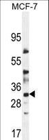 - LYSMD4 Antibody western blot of MCF-7 cell line lysates (35 ug/lane). The LYSMD4 antibody detected the LYSMD4 protein (arrow).