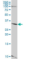 - Western Blot analysis of LYSMD4 expression in transfected 293T cell line (H00145748-T01) by LYSMD4 MaxPab polyclonal antibody.Lane 1: LYSMD4 transfected lysate(32.67 KDa).Lane 2: Non-transfected lysate.