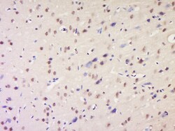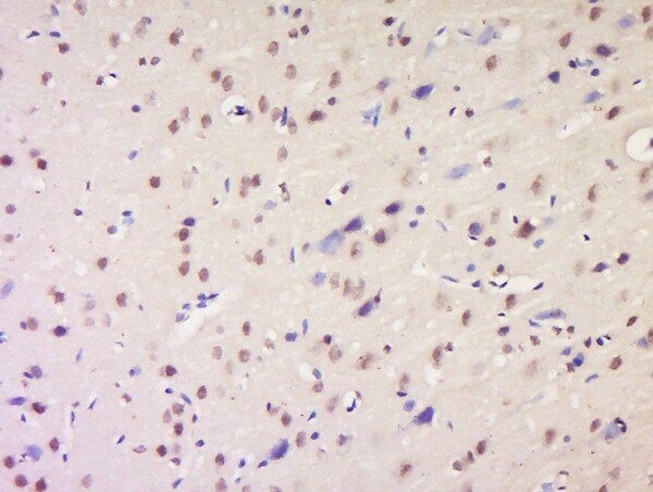 - Formalin-fixed and paraffin embedded rat brain labeled with Anti-NSD1 Polyclonal Antibody, Unconjugated (bs-8170R) at 1:200 followed by conjugation to the secondary antibody and DAB staining.