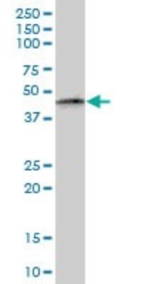 - Western Blot: PTRF Antibody [H00284119-B01P] - Analysis of PTRF expression in transfected 293T cell line by PTRF polyclonal antibody. Lane 1: PTRF transfected lysate(42.9 KDa). Lane 2: Non-transfected lysate.