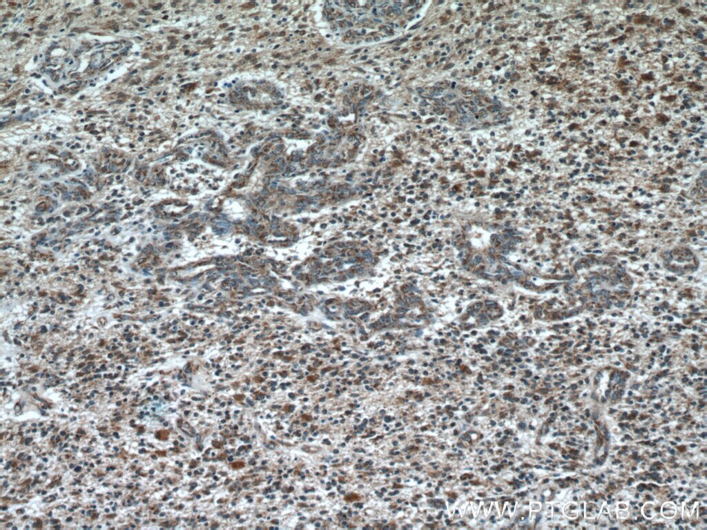 - Immunohistochemistry of paraffin-embedded human gliomas using 10638-1-AP (REDD1 specific antibody) at dilution of 1:50 (under 40x lens).