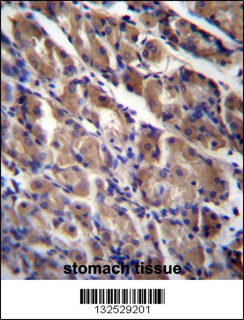 - ABRA Antibody (C-term) (Cat. #OAAB09114)immunohistochemistry analysis in formalin fixed and paraffin embedded human stomach tissue followed by peroxidase conjugation of the secondary antibody and DAB staining.This data demonstrates the use of ABRA Antibody (C-term) for immunohistochemistry. Clinical relevance has not been evaluated.
