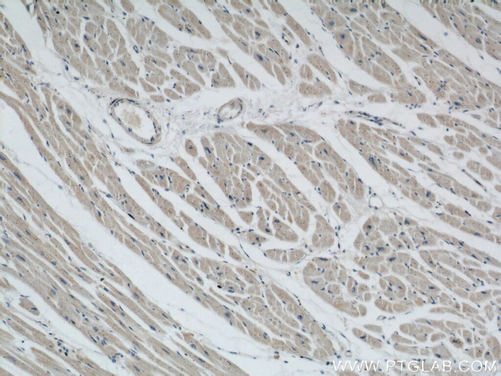 - Immunohistochemistry of paraffin-embedded human heart using 22673-1-AP (STARS/ABRA antibody) at dilution of 1:50 (under 10x lens).