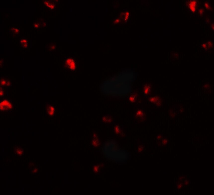 - Immunofluorescence of FAM193B in Jurkat cells with FAM193B Polyclonal Antibody (Product # PA5-34440) at 20 µg/mL.