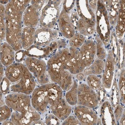- Immunohistochemistry: GPR31 Antibody [NBP1-87468] - Staining of human kidney shows cytoplasmic positivity in renal tubules.