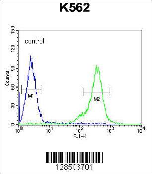 - TEX13B Antibody (C-term) (Cat. #AP10895b) flow cytometric analysis of K562 cells (right histogram) compared to a negative control cell (left histogram).FITC-conjugated goat-anti-rabbit secondary antibodies were used for the analysis.