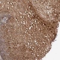- Immunohistochemical staining of human esophagus with TEX13B polyclonal antibody (Cat # PAB21926) shows strong cytoplasmic and nuclear positivity in squamous epithelial cells at 1:20-1:50 dilution.