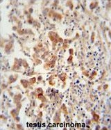 - TEX13B antibody (C-term) (Cat. AP54222PU-N) immunohistochemistry analysis in formalin fixed and paraffin embedded human testis carcinoma followed by peroxidase conjugation of the secondary antibody and DAB staining. This data demonstrates the use of the TEX13B antibody (C-term) for immunohistochemistry. Clinical relevance has not been evaluated.