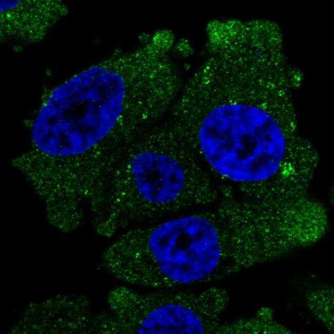 - Immunofluorescent staining of VSIG1 in human cell line PC-3 using a VSIG1 Polyclonal Antibody (Product # PA5-57605) shows localization to cytosol and vesicles.