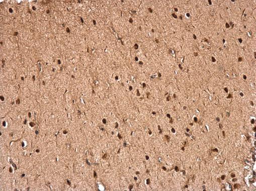 - CPSF6 antibody detects CPSF6 protein at nucleus on rat hind brain by immunohistochemical analysis. Sample: Paraffin-embedded rat hind brain. CPSF6 antibody (GTX115537) dilution: 1:500.