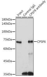 Rabbit polyclonal antibody anti-CPSF6 is suitable for use in Western Blot, Immunohistochemistry, Immunofluorescence and Immunoprecipitation.