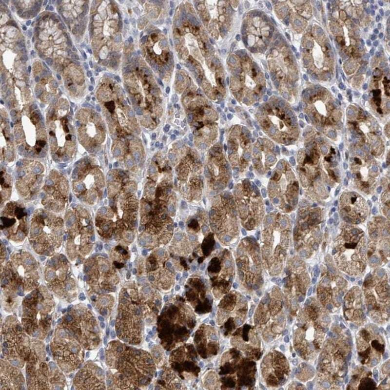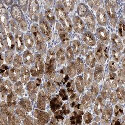 - Immunohistochemical staining of C9orf152 in human stomach using a C9orf152 Polyclonal Antibody (Product # PA5-62238) shows cytoplasmic positivity in glandular cells.
