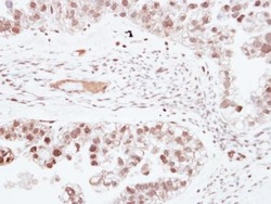 - Immunohistochemical analysis of paraffin-embedded human ovarian cancer, using ZNF501 (Product # PA5-30734) antibody at 1:250 dilution. Antigen Retrieval: EDTA based buffer, pH 8.0, 15 min.