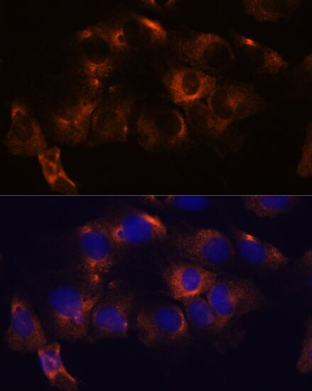 - Immunofluorescence analysis of ATL2 in L929 cells. Samples were incubated with ATL2 Polyclonal antibody (Product # PA5-90788) using a dilution of 1:100. Blue: DAPI for nuclear staining.