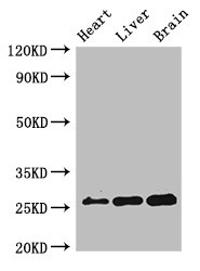 - Positive WB detected in:Mouse heart tissue,Mouse liver tissue,Mouse brain tissue;All lanes:RND2 antibody at 2?g/ml;Secondary;Goat polyclonal to rabbit IgG at 1/50000 dilution;Predicted band size: 26 KDa;Observed band size: 26 KDa;