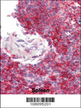 - Formalin-fixed and paraffin-embedded human Spleen tissue reacted with Phospho-P300-S1834 Antibody , which was peroxidase-conjugated to the secondary antibody, followed by AEC staining. This data demonstrates the use of this antibody for immunohistochemistry; clinical relevance has not been evaluated.