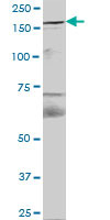 - Western Blot analysis of FYCO1 expression in transfected 293T cell line (H00079443-T01) by FYCO1 MaxPab polyclonal antibody.Lane 1: FYCO1 transfected lysate(28.05 KDa).Lane 2: Non-transfected lysate.