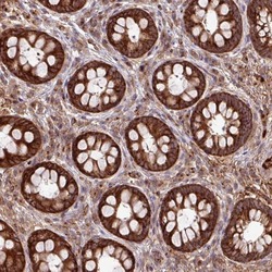 - Immunohistochemical analysis of LSM12 in human rectum using LSM12 Polyclonal Antibody (Product # PA5-62517) shows strong cytoplasmic positivity in glandular cells.