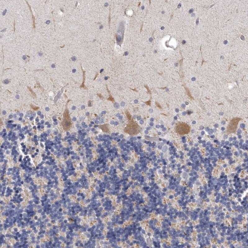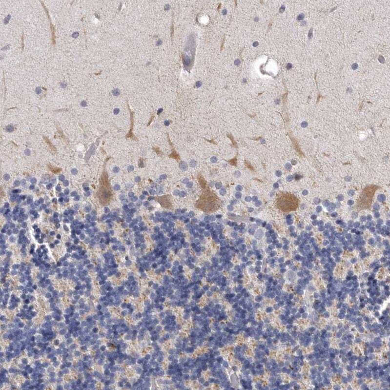 - Immunohistochemical analysis of NKAIN4 in human cerebellum using NKAIN4 Polyclonal Antibody (Product # PA5-56280) shows moderate cytoplasmic positivity in Purkinje cells.