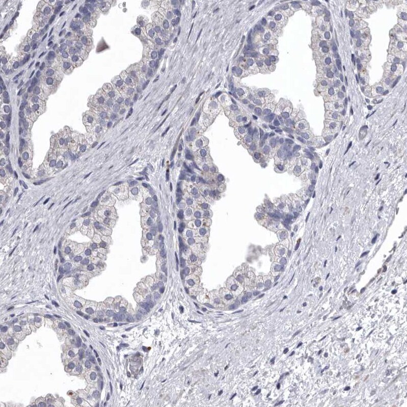 - Immunohistochemical analysis of NKAIN4 in human prostate using NKAIN4 Polyclonal Antibody (Product # PA5-56280) shows no positivity in glandular cells as expected.