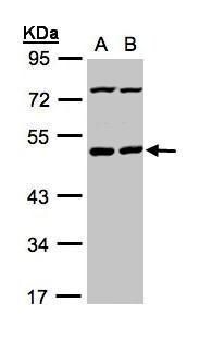- Western Blot using PSKH1 Polyclonal Antibody (Product # PA5-27917). Sample (30 µg whole cell lysate). A: HeLa S3. B: Hep G2. 10% SDS PAGE. PSKH1 Polyclonal Antibody (Product # PA5-27917) diluted at 1:1,000.