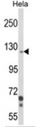 - Western blot analysis of WDR44 Antibody (C-term) (AP18241PU-N) in Hela cell line lysates (35ug/lane). WDR44 (arrow) was detected using the purified Pab.