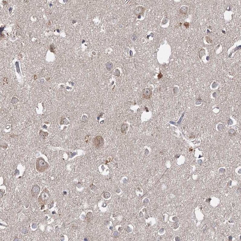 - Immunohistochemical analysis of WDR44 in human cerebral cortex using WDR44 Polyclonal Antibody (Product # PA5-58242) shows moderate granular cytoplasmic positivity in neurons.