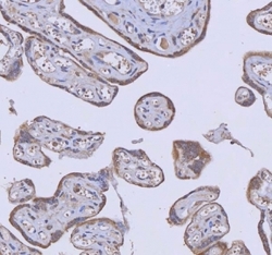 - IHC staining of FFPE human placental tissue with WDR44 antibody. HIER: boil tissue sections in pH8 EDTA for 20 min and allow to cool before testing.