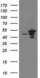 - HEK293T cells were transfected with the pCMV6-ENTRY control (Left lane) or pCMV6-ENTRY ARFGAP1 (RC206987, Right lane) cDNA for 48 hrs and lysed. Equivalent amounts of cell lysates (5 µg per lane) were separated by SDS-PAGE and immunoblotted with anti-ARFG. Positive lysates LY406240 (100 µg) and LC406240 (20 µg) can be purchased separately from OriGene.