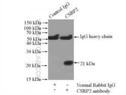 - IP result of anti-CSRP2 (IP:10892-2-AP, 4ug; Detection:10892-2-AP 1:1000) with mouse liver tissue lysate 4000ug.
