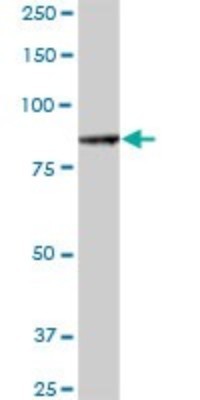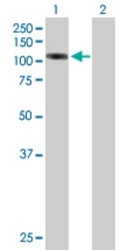 - Western Blot: ALS2CL Antibody [H00259173-B01P] - Analysis of ALS2CL expression in transfected 293T cell line by ALS2CL polyclonal antibody. Lane 1: ALS2CL transfected lysate(104.83 KDa). Lane 2: Non-transfected lysate.