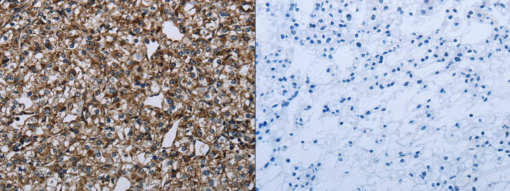 - The image on the left is immunohistochemistry of paraffin-embedded Human prostate cancer tissue using (FAM89B Antibody) at dilution 1/30, on the right is treated with fusion protein. (Original magnification: ?200)