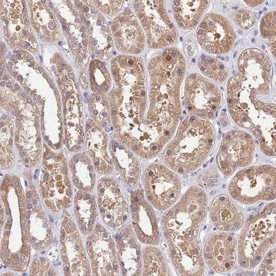 - Immunohistochemistry-Paraffin: FAM89B Antibody [NBP2-14008] - Staining of human kidney shows moderate cytoplasmic positivity in renal tubules.