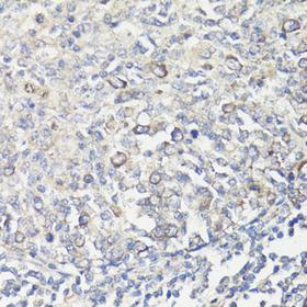 - Immunohistochemistry of paraffin-embedded Human tonsil using MUL1 Polyclonal Antibody at dilution of 1:100 (40x lens).