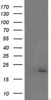 - HEK293T cells were transfected with the pCMV6-ENTRY control (Left lane) or pCMV6-ENTRY MCTS1 (RC200224, Right lane) cDNA for 48 hrs and lysed. Equivalent amounts of cell lysates (5 µg per lane) were separated by SDS-PAGE and immunoblotted with anti-MCTS1. Positive lysates LY415503 (100 µg) and LC415503 (20 µg) can be purchased separately from OriGene.