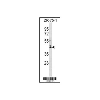 - PCMTD2 Antibody (C-term) (Cat. # OAAB14040) western blot analysis in ZR-75-1 cell line lysates (35µg/lane). This demonstrates the PCMTD2 antibody detected the PCMTD2 protein (arrow). PCMTD2 is strongly supported by BioGPS gene expression data to be expressed in ZR75-1