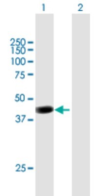 - Western Blot: PCMTD2 Antibody [H00055251-B01P] - Analysis of PCMTD2 expression in transfected 293T cell line by PCMTD2 polyclonal antibody. Lane 1: PCMTD2 transfected lysate(39.71 KDa). Lane 2: Non-transfected lysate.