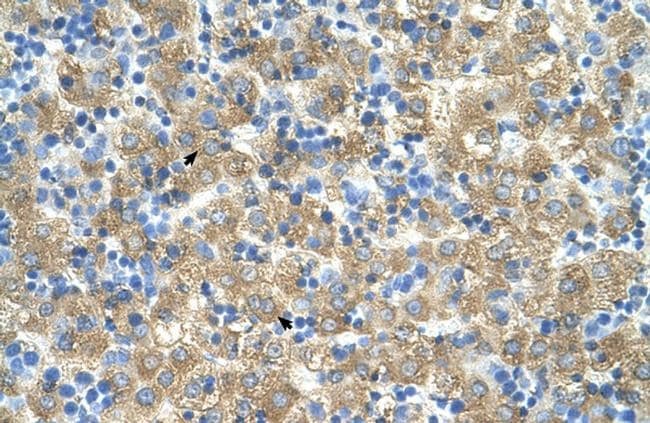 - Immunohistochemistry analysis of human liver tissue using an anti-MARVELD3 polyclonal antibody (Product # PA5-42629).