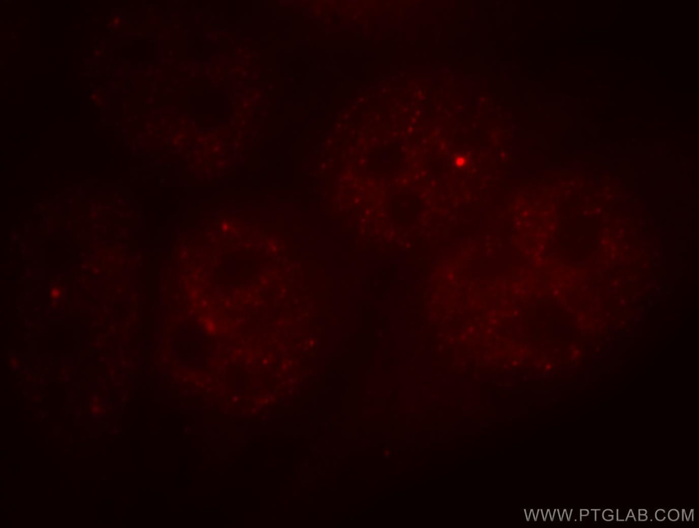 - Immunofluorescent analysis of Hela cells, using SHFM1 antibody 13639-1-AP at 1:25 dilution and Rhodamine-labeled goat anti-rabbit IgG (red).