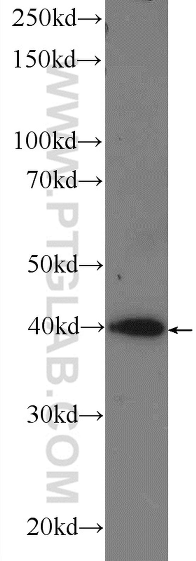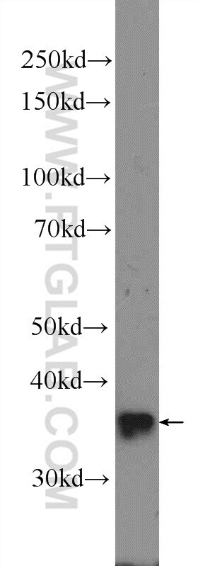 - HEK-293 cells were subjected to SDS PAGE followed by western blot with 25440-1-AP (RRP36 antibody at dilution of 1:600 incubated at room temperature for 1.5 hours.