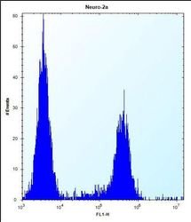 - Flow cytometry analysis of Neuro-2a cells using a CF153 polyclonal antibody (Product # PA5-24273) (right) compared to a negative control cell (left) at a dilution of 1:10-50, followed by a FITC-conjugated donkey anti-rabbit antibody