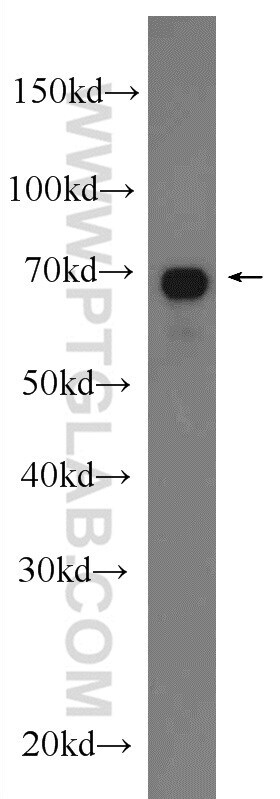 - MCF7 cells were subjected to SDS PAGE followed by western blot with 14528-1-AP (TOM70 antibody) at dilution of 1:1500 incubated at room temperature for 1.5 hours.