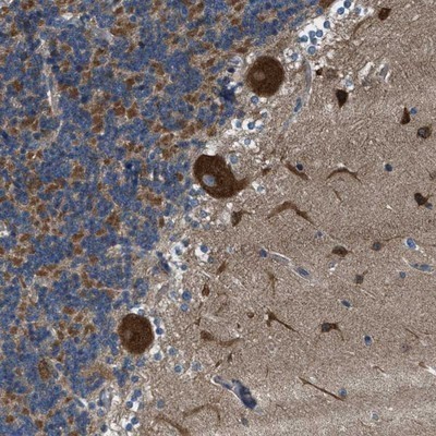- Immunohistochemistry-Paraffin: TOM70 Antibody [NBP1-87863] - Staining of human cerebellum shows strong cytoplasmic positivity in Purkinje cells, cells in the granular and molecular layer.