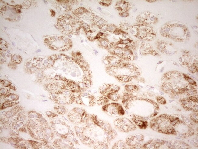 - Immunohistochemical staining of paraffin-embedded human Kidney tissue within the normal limits using anti-MRRF mouse monoclonal antibody. (Heat-induced epitope retrieval by 1 mM EDTA in 10mM Tris, pH8.5, 120°C for 3min, TA806103)