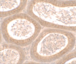 - Immunofluorescence of MOSPD1 in mouse testis tissue with MOSPD1 Polyclonal Antibody (Product # PA5-34529) at 20 µg/mL.