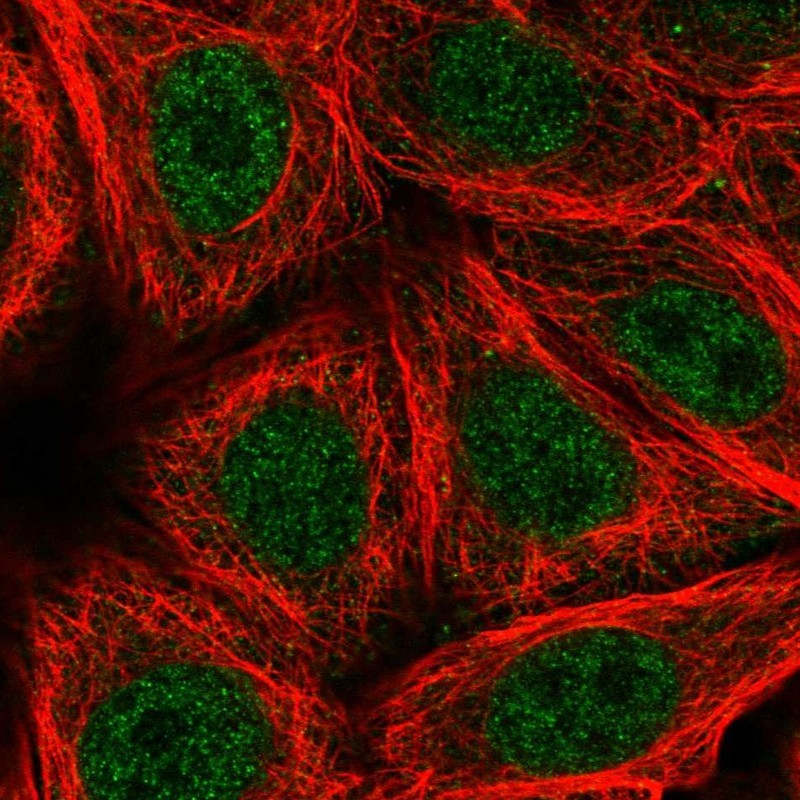 - Immunofluorescent staining of human cell line MCF7 shows localization to nucleoplasm.