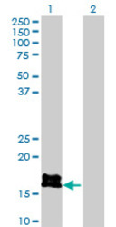 - Western Blot analysis of CDK2AP2 expression in transfected 293T cell line (H00010263-T01) by CDK2AP2 MaxPab polyclonal antibody.Lane 1: CDK2AP2 transfected lysate(13.86 KDa).Lane 2: Non-transfected lysate.
