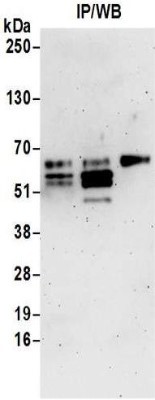 - Immunoprecipitation: TDG Antibody [NBP2-32248] - Samples: Whole cell lysate (0.5 or 1.0 mg per IP reaction; 20% of IP loaded) prepared using NETN buffer from 293T cells. Antibodies: Affinity purified rabbit anti-Thymine DNA glycosylase antibody NBP2-32248 used for IP at 6 ug per reaction. Thymine DNA glycosylase was also immunoprecipitated by rabbit anti-Thymine DNA glycosylase antibody BL16331. For blotting immunoprecipitated Thymine DNA glycosylase, NBP2-32248 was used at 1 ug/ml. Detection: Chemiluminescence with an exposure time of 3 minutes.